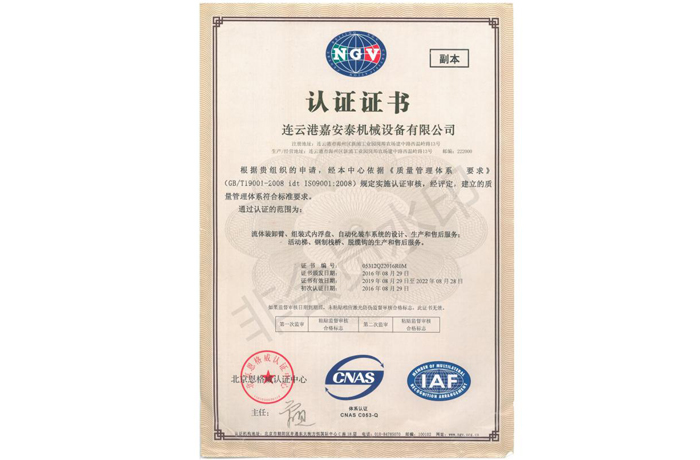 資信等級證書裝車鶴管適用于汽、煤、柴油,液態(tài)化工介質汽車、頂部裝卸車。裝車鶴管可以分為三類,分別是:全自動鶴管、氣動帶手動鶴管、手動鶴管。裝車鶴管還有三個特殊功能,分別是:氣相回收,伴熱保溫,變形產(chǎn)品。 鶴管操作規(guī)則流程: a.鶴管在裝車前,操作人員需要對油庫油臺設施的完好性進行檢查,檢查靜電接地線,確保油車主梁上緊固有效。 b.靜電接地線應在卸油前連接好;按規(guī)定做好穩(wěn)油靜置工作 c.將溢油探頭放至油缸口安全高度位置 d.在鶴管裝卸油結束后,需將尾管里的余油、氣體排空后才能提出放置原來位置。<了解詳情>